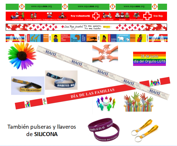 Tenemos a tu disposición todo un elenco de pulseras, llaveros, gorras, camisetas…. que se utilizan como publicidad y también para recaudar fondos… o para control de accesos, identificación,….