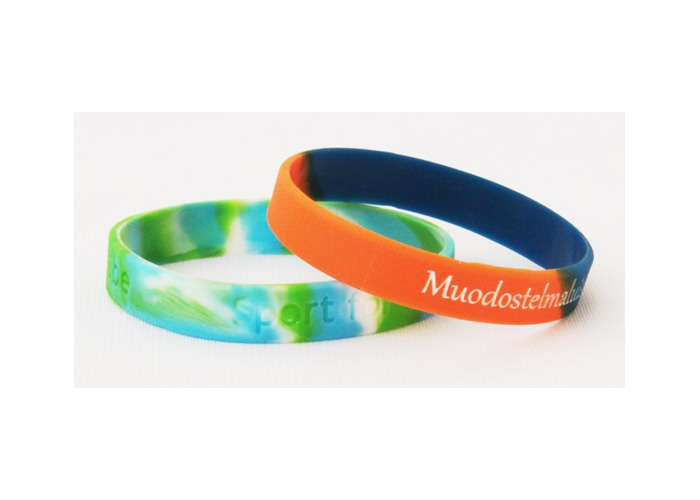 Incluso se pueden servir pulseras bicolores según diseño del cliente, o con efectos especiales, como el efecto mármol.